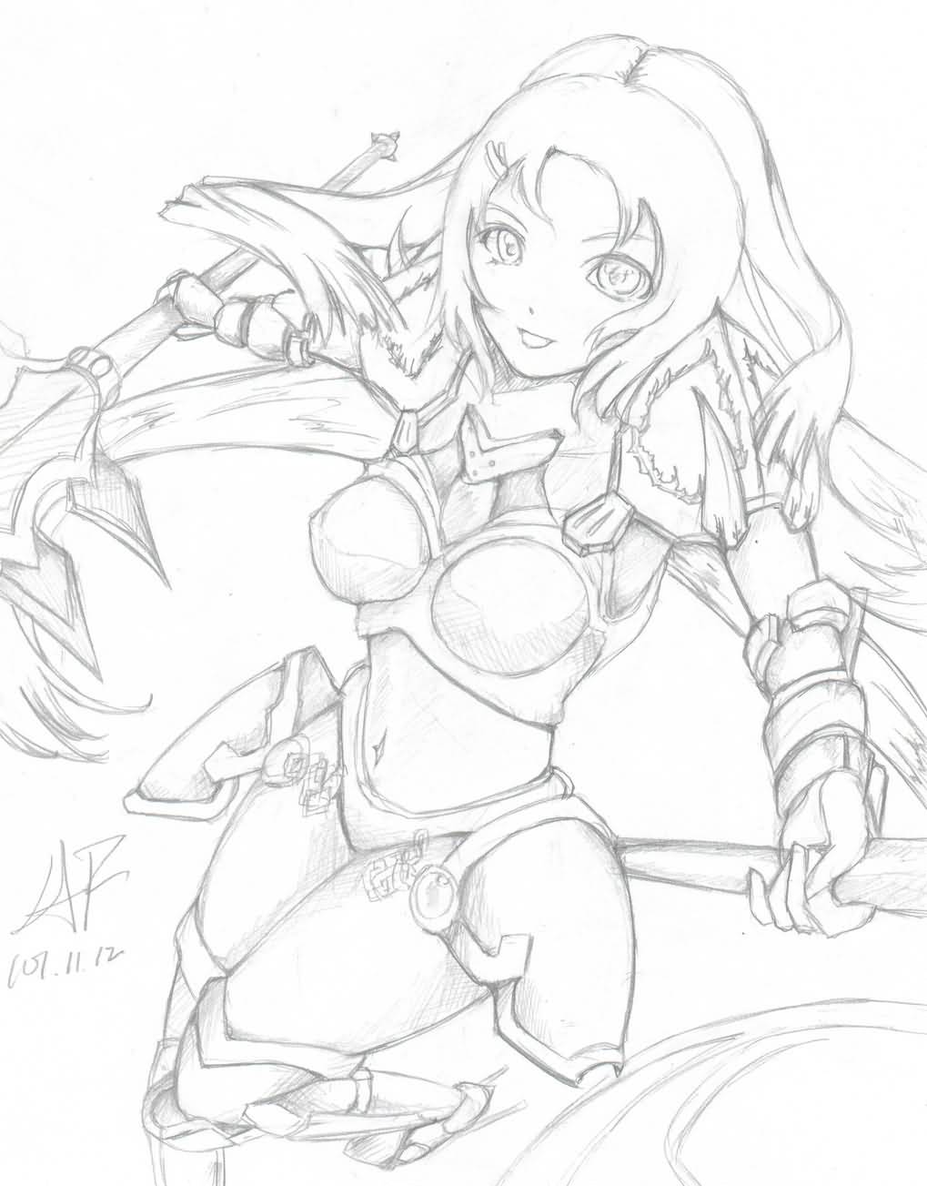 最近下定决心读书,所以决定quit前画一张,自家女儿 艾茉莉 XDD,上图为想像画面,下图为游戏画面,画功还不是很熟练