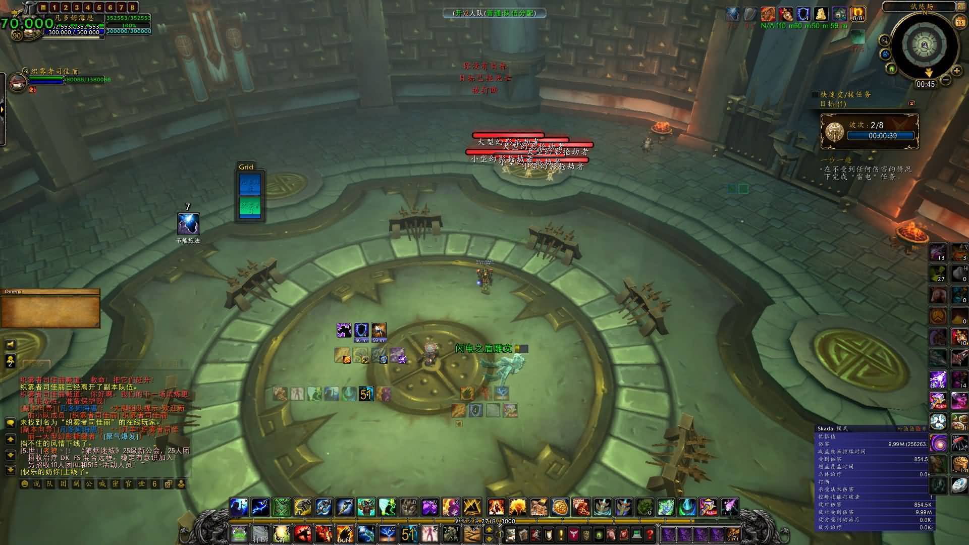 又一个难点。如果第七波dps不够 打了一个风卫士进第八波 会很危险 这波刷新1个风卫士和1群兔子 直接x下土元素 yy 电能 tt重置 再来个电能 控制aoe npc血量危险就升腾 指引拉熔岩弹射