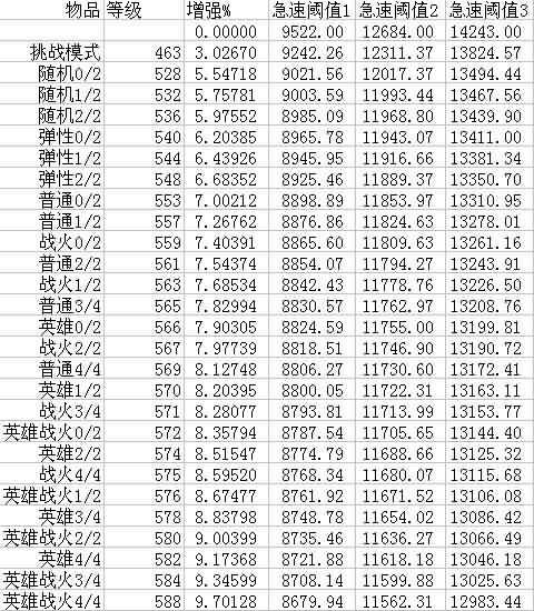 我这里就拿个表给大家看看 好让大家知道该如何重铸急速阈值