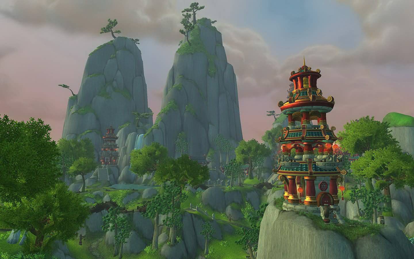 作为一个部落(联盟的玩家也有一一对应的角色啦),从刚踏入潘达利亚,纳兹戈林将军带领我们一步一步探索,融入这个新的大陆,到碰到第一个和我们同行的熊猫人——周卓,然后麒麟三人组,青龙雕像的毁灭,煞魔的出现,再到四风谷,老陈,丽丽,四风谷的各位,那一行从天禅院和我们一起训练的弟子们,烈日行者德兹科(仔细观察的话,从当初身上背着2头小牛,到一头,完全表现了时间线的推进呀),朱家堡的那位,到影踪派的诸位等等我完全没法一一列出的能让我们瞬间浮现眼前的NPC角色们。每一个都性格饱满鲜明,整个剧情也一步步相当紧凑,几个主要声望,比如翔龙骑士团的入团欢迎上那片片桃花,影踪派崇拜时那一个个NPC们一字排开,和我们共同庆祝,到金莲教崇拜时的那场并肩作战这些,也第一次让我感觉到了“声望”这个东西的意义。