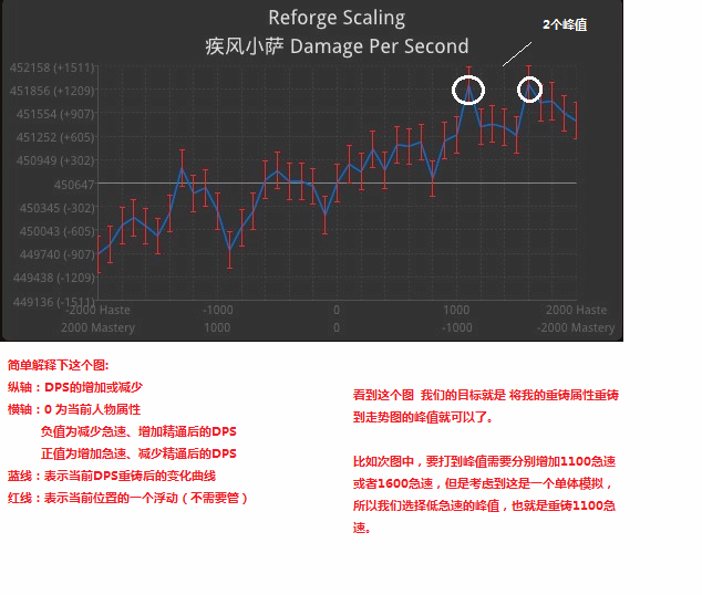 注意的是,增强的急速/精通搭配是一个非线性变化,并且往往会有多个峰值断点,这个断点是随着你的装等和配装而变化的,而不是我们常常认为的比如40%精通 60%急速 这样一个线性的比例关系。
