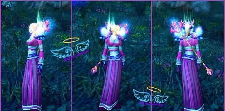 配上FS职业任务给的法纹长袍,结合出产这条裙子的地图——幽魂之地,呈现出不一样的紫色魔幻效果~很适合奥法的风格