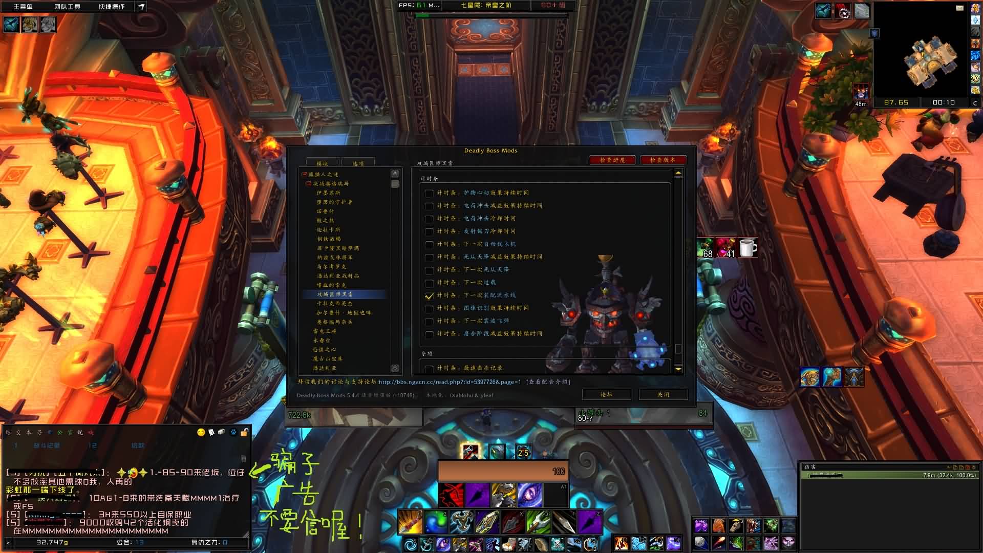 既然我们是上传送带的,那请你把这个BOSS的DBM里技术条的其他计时条关闭。你只需要保持一个如图 “