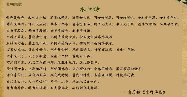 从这首我们再也熟悉不过的北朝民歌中,我们似乎清晰地看到花木兰由柔弱少女转变为坚强女汉子的痛苦艰难的全过程: