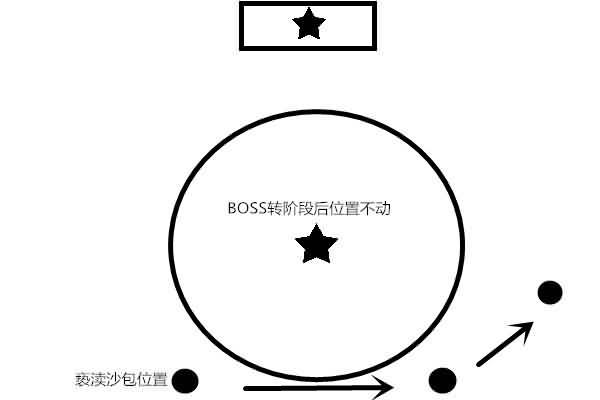 大星星BOSS初始位置,大圆圈位置直接嘲讽精灵火开怪,BOSS拉到位置,保证人员站在BOSS屁股后面,这样的话小怪过来就不会打人群背,小怪聚堆之前装甲熊自然守护脑残吼SP全开挂痛击无脑