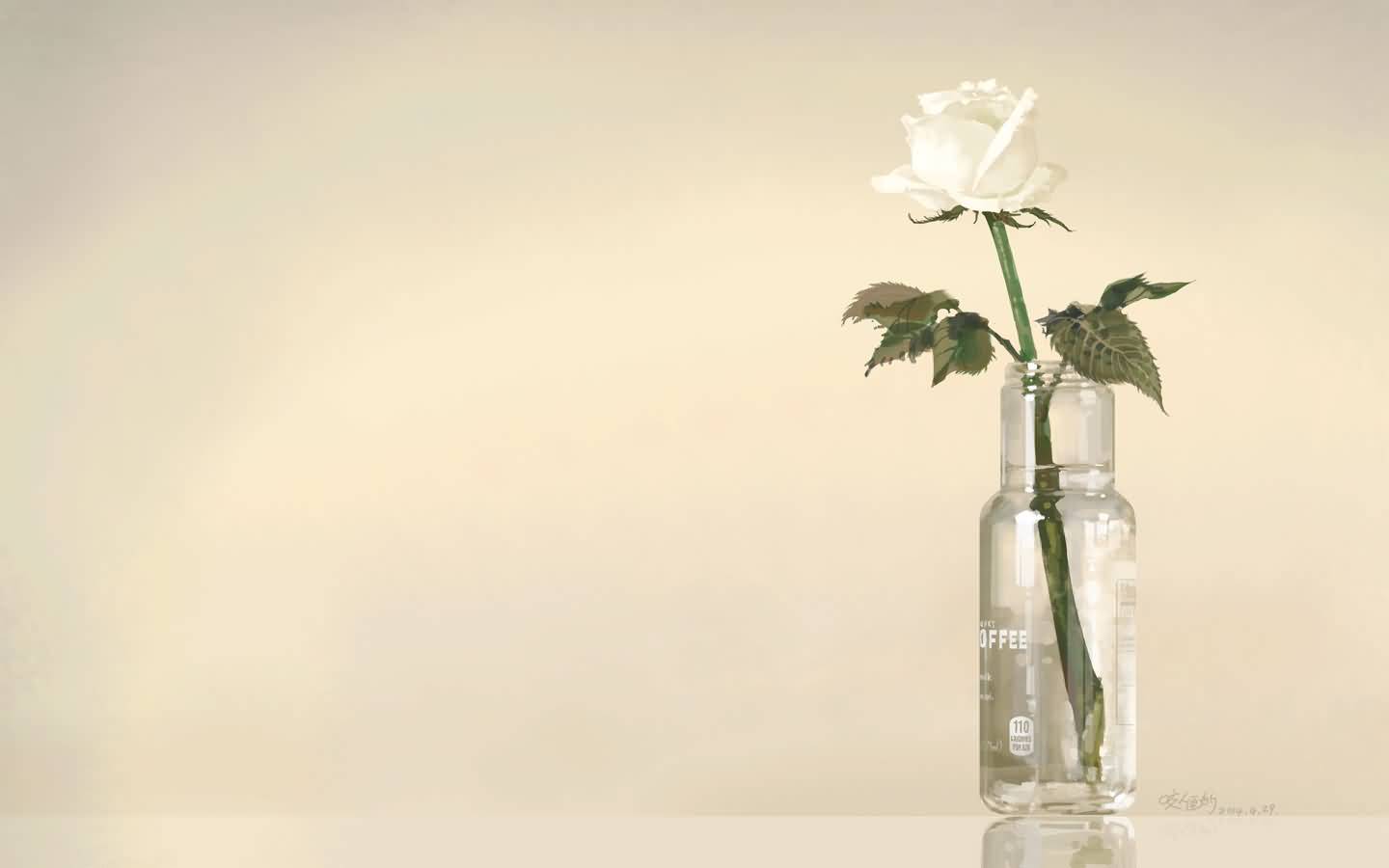 前些日子有朋友送了我一朵白玫瑰,用某奢华的饮料瓶养起来。