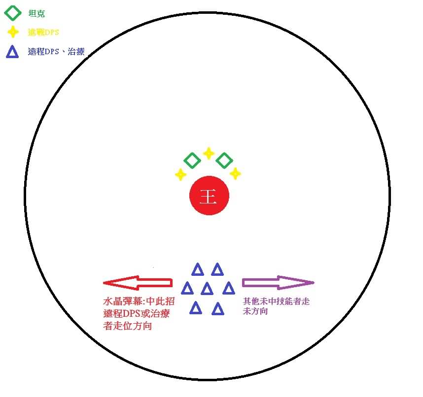 进战DPS:几乎是木桩王,跟坦克一起站位,不要站王的屁股避免吃到红烟浪费治疗。