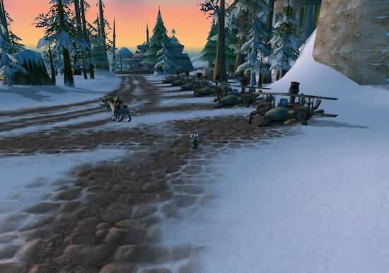 与铁炉堡机场跑道一样,欢乐巨魔村也是一处位于飞行航线下的特色地点。它地处黑海岸、费伍德森林和月光林地三个区域的交汇处,隐藏在崇山峻岭之间,远离尘嚣,许多巨魔在这里终日纵情歌舞,是艾泽拉斯为数不多宁静而祥和的乐土,宛如陶渊明笔下的世外桃源。在《巫妖王之怒》上线前,玩家可以在费伍德森林飞身跳入,而WLK上线之后则因加入了一道空气墙而彻底与世隔绝。在《大地的裂变》上线后,这里被命名为“碎矛谷”,成了一处任务区域。