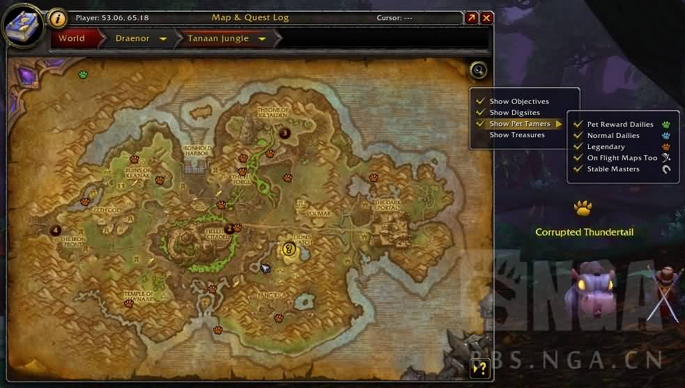 在塔纳安丛林,有15只传说宠物被古尔丹的邪能腐蚀了,净化他们将得到不菲的奖励