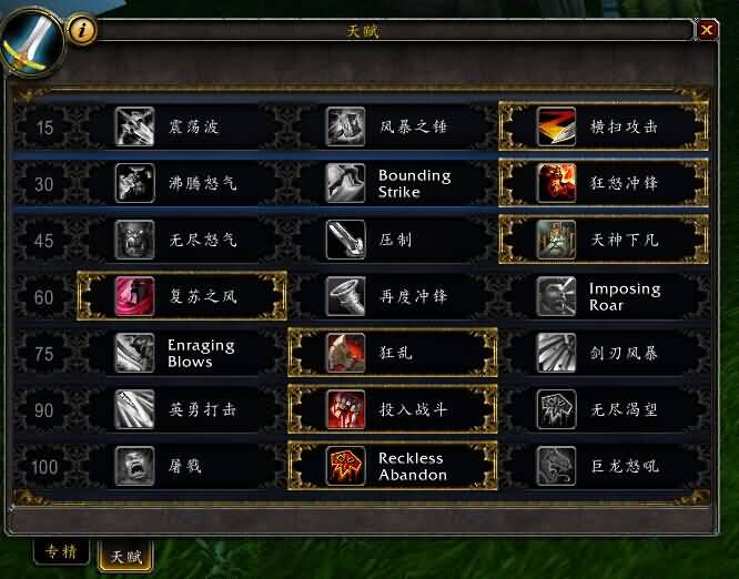 100级天赋点第二个勇往直前?然后短CD的鲁莽打爆发。