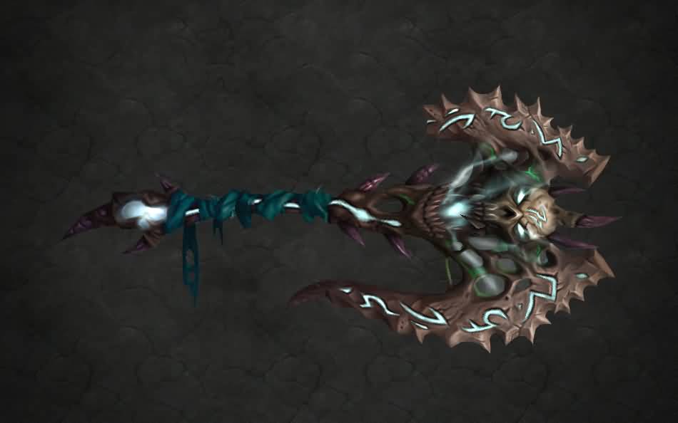 这把古老的燃烧军团战斧用可以吸收敌人生命精华的金属打造而成。最初制造者的灵魂被困在了斧中,受到诅咒的折磨,它的饥渴永远不会停息。一千多年来,一名狡猾的莫尔葛老工程师用这把斧头镇压叛乱,吞噬燃烧军团敌人的生命力量。长年累月下来,此斧令更多人闻风丧胆的同时,也将其持有者变得无比强大。