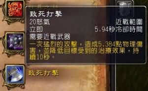 它有点类似AOE用的致死打击。消耗10怒,6秒冷却不随急速缩短,占用1GCD。