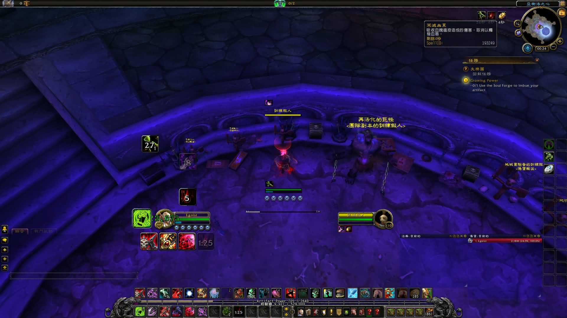 由于符文分流的取消 使得DKT吃单发大伤害的技能会显得非常无力 (除了骨盾没有硬减伤) 这个天赋适合的最典型的BOSS大概就是SOO马尔考洛克的P2了 不过硬伤是刃舞3分钟CD有点长 一场BOSS战用不能一直使用