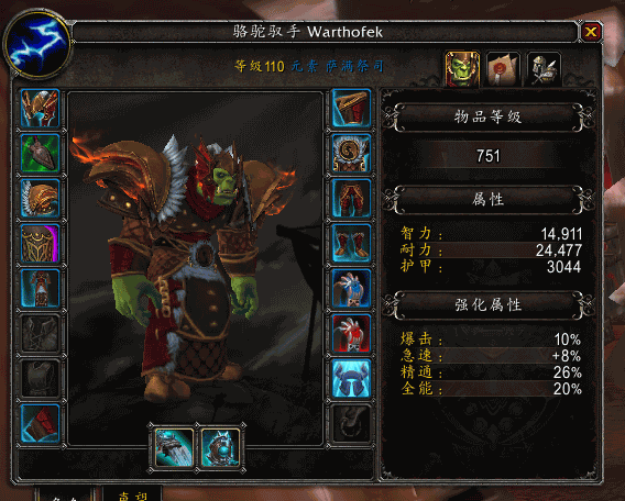 测试服上元素萨伤害偏低,磕磕碰碰到了110级,有空做了下几个主要特质的测试。 元素萨神器大多按百分比加成,故不做测试。此次进行对1个初始特质,3个大特质,以及1个小特质进行触发机制研究探讨,涉及伤害部分,请一律忽略。本次测试依旧使用PVP副预设110级,满神器特质人物。为了避免触发饰品的影响,摘掉了一个饰品。人物面板、天赋如下: