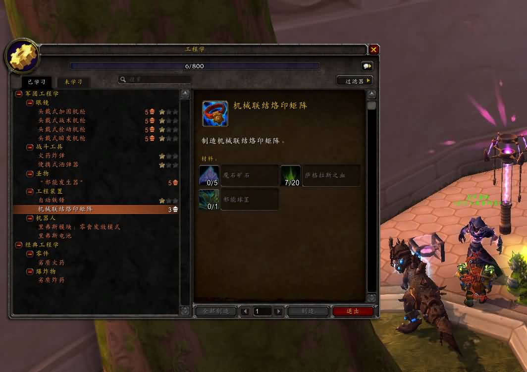 看来这个小更新就包含了这个内容。马上兑换工程学的图纸 [结构图:机械联结烙印矩阵] 材料还算好,不是很变态,20个萨格拉斯之血坚持天天做世界任务收集满只是时间问题了