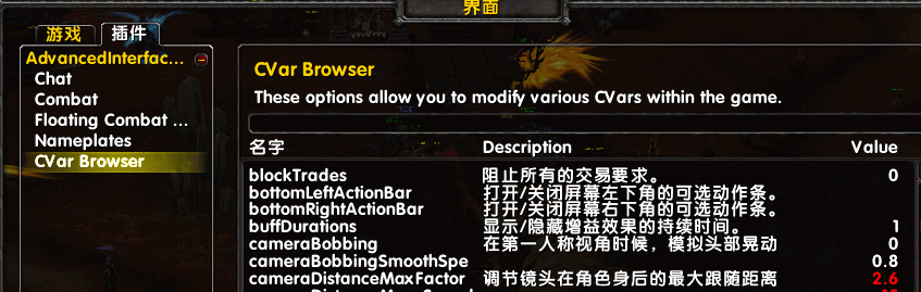 如果以不想点宏的可以下一个插件叫AdvancedInterfaceOptions直接把下图的“调节镜头在身后的最大距离设置成2.6”改完后/RL一下,这样就不需要上线点宏了。