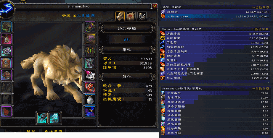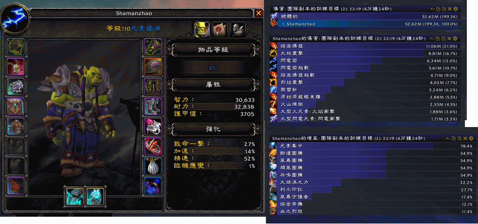首先,因为萨满区,对元素萨的副属性权重谈论比较激烈,但又没simc很好的展示。本篇幅其实还没有完全(因为元素领主的buff每天刷新一种,还需要更多急速样本) 在110级人物面板,350暴击=1%,325急速=1%,175精通=1%