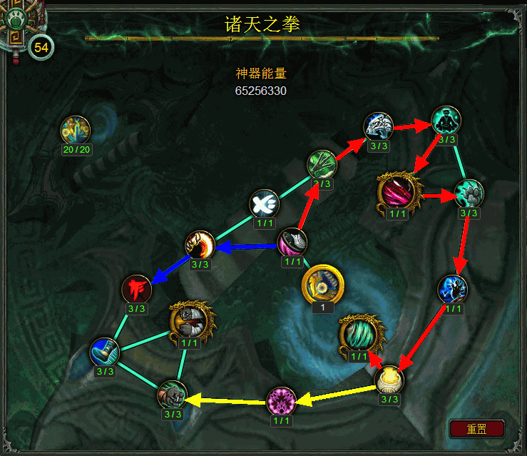 如果你正常升级,那么在107级左右就会有足够的神器能量来点到10级了(左上角的数字就是等级),到13级开始需求的能量会显著增长。
