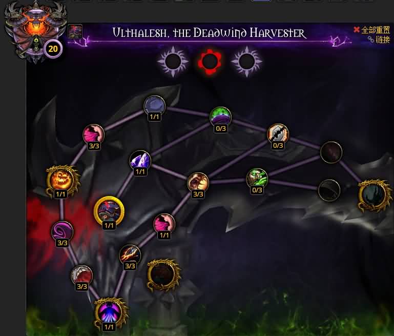 可以看到由于毁灭术小特质极高的收益,所以不急于点出大特质,在前期将神器点数投资在这些高性价比的小特质上也是不错的选择,坏处则是15神器等级时才可以点出第一个大特质混沌燃烧,在满级时无法第一时间达到。