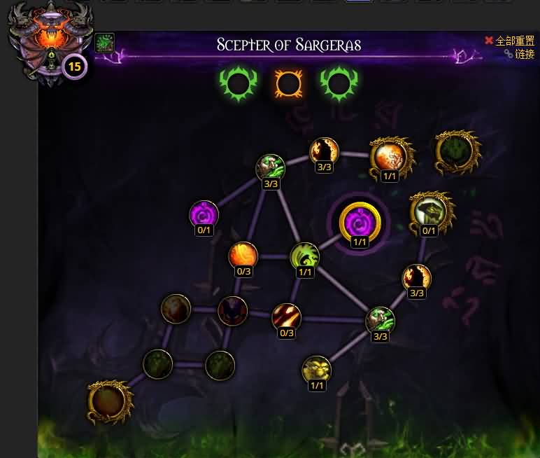 可以看到第二个大特质灵魂烈焰离这条线非常近,所以顺着特质树就可以在神器等级16级时点出第二个大特质。