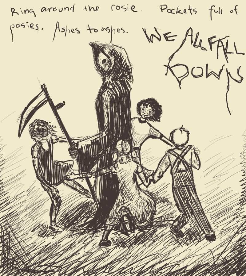 试想一下当初黑死病肆虐欧洲时,英国的孩子们,也是在一个周围亲人随时会死去的环境下唱着这首童谣。他们的声音越是充满着童真,就越让周遭绝望和死亡的气息越凝重。