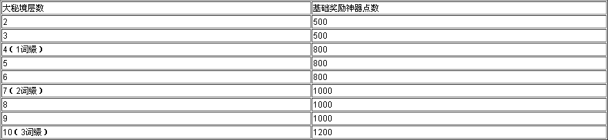 大秘境各层神器点数奖励