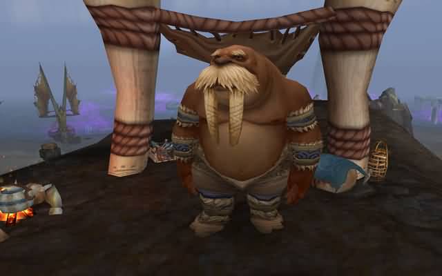 海象人的营地里矗立的巨大雕像记载着他们各个季节的捕鱼心路历程,这种独特的记载方式迄今为止也显得格外古老。海象人的巨大牙齿上刻着部族的纹章,你可以从这些纹章的老旧和磨损程度上来断定海象人的年龄。希望这个爱好和平的游牧民族能够将在未来成为联盟和部落的新盟友。