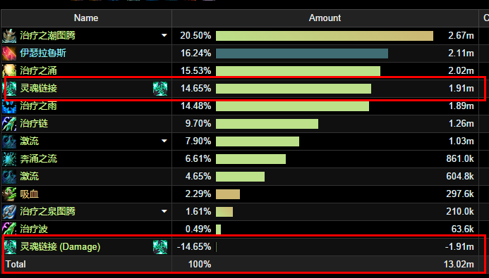 WCL现在已经将链接的治疗量修正掉了: