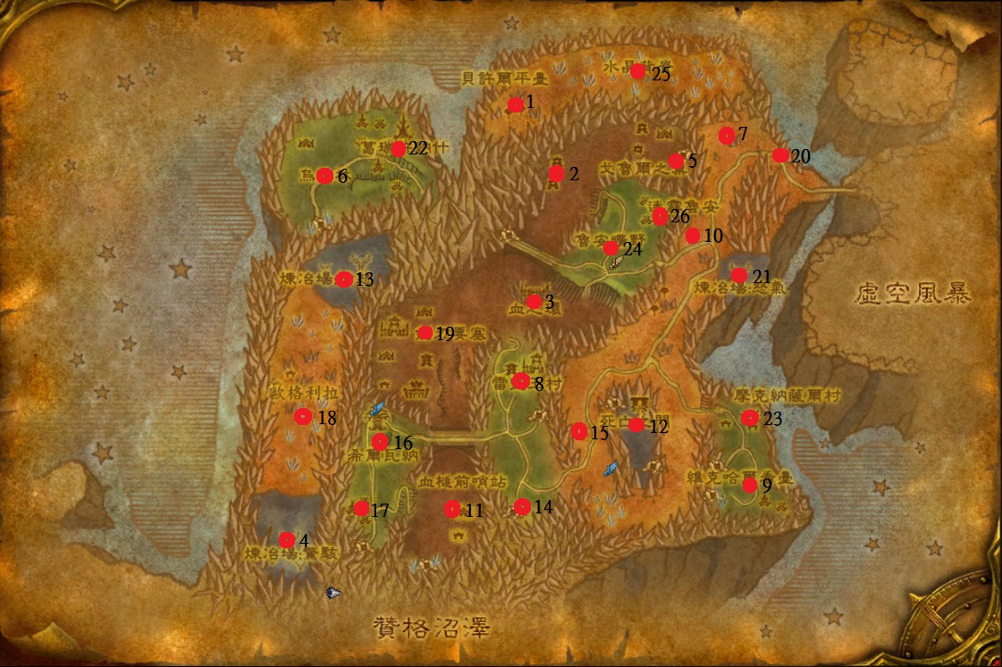 各点位置请参考地图红圈右边黑色数字 (数字跟成就显示的一样)