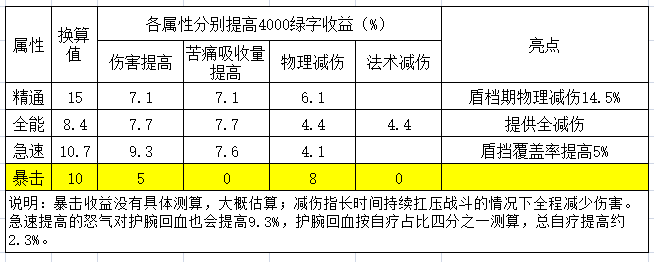 仅以此文提供一个防战属性选择的大概方向吧,有错请指正,下面是部分数据的具体测算: