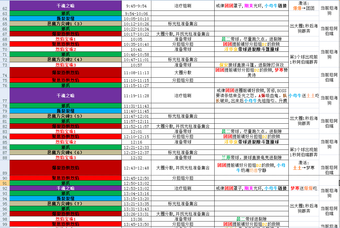 最后分享一个DPS标准,只要P1BOSS本体DPS够,能按时击杀大怪,能在第二轮DPS影子点出来前打上天,就完全可以采取本战术,只要P1够,后面每一个阶段都是够的。关于P3的一些分析,目前熔炉的提升对鸡蛋来说最大的利好在于P3,以前的团队都会经历方尖碑5(X7)的过程,在现在的DPS大环境下,只要P3没出现太大的失误,都见不到这种情况,2T4N团队甚至可以在千魂三读条的时候击杀,3T4N也就多几秒,3T5奶如果做的好也是可以在X7前打掉的,因为千魂三开始读条后,到方尖碑X7出来,到方尖碑X7爆炸,有半分多钟的时间等于这个BOSS是个木桩,没任何威胁性技能,你在这期间早打掉,晚打掉有区别吗,我觉得是没区别的。而且严格采取14分钟时间轴战斗的话,P1起手SX,刚进P3的时候几乎SX就好了,不用到20%斩杀开,如果你带了DKT奶德之类的黑夜很简单,甚至例如火法冰法都可以不开技能,就让战士这些短爆发的职业A掉就好了。刚进P3开启SX,因为场面不混乱,X3方尖碑可以标的照顾下近战输出,获得更大的收益。对于治疗技能的安排和DPS技能的安排也有了很大的缓冲时间,比如鸟德最强一波开过技能后,基本是黑夜一半技能才好,P3一开始就可以爆发两次,如果压了阶段,那么基本都是P3第二个方尖碑才有技能。