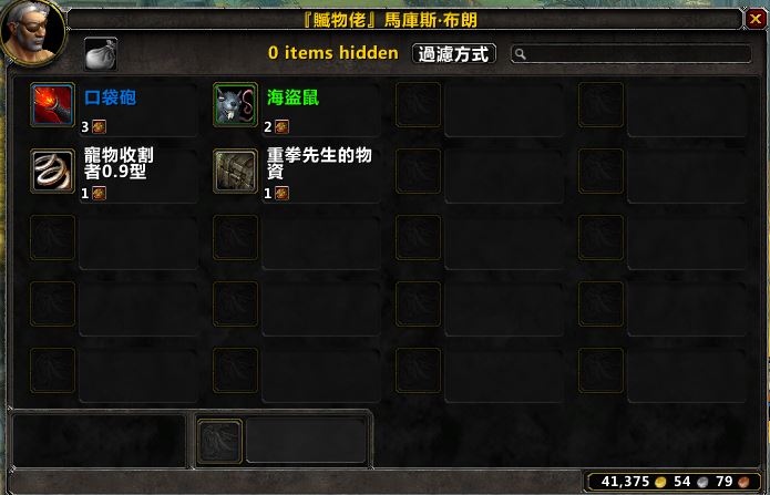 我觉得比起上次的哀嚎洞穴还要简单很多,大家有时间一定要挑战看看。这次改以通货旧瓶盖作为交换奖励的筹码,不像哀嚎洞穴的奖励要靠RNG。顺带一提只要第一次通关死亡矿坑宠物队战,达拉然宠物店布芮妮身边随从魔噗便可为玩家开启传送门到宠物地城的NPC旁边,包含哀嚎洞穴。