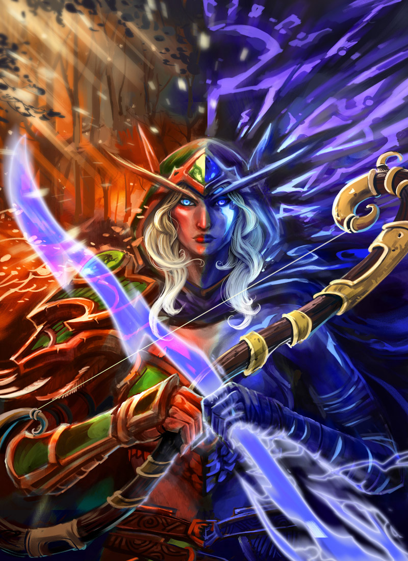这次还是用了上次画伊利丹的手法(http://www.pywow.com/2017/1001/34813.html)两种形态画在一起.灵感来自最近的魔兽世界广播剧千年之战 奥蕾莉亚的暗影形态非常棒 也引出了8.0的故事线 所以画一幅