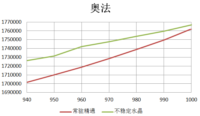 在1000装备等级上,不稳定水晶因为绿字成长曲线的关系,伤害会被常驻精通反超