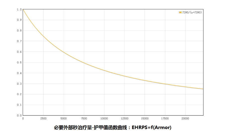 在实际战斗中,情形是复杂的,借助一定的统计插件,我们可以从战斗分析日志中提取出某一场战斗中有关EHRPS的信息。如果仅在一个非常理想而简单的模型下,考虑护甲对EHRPS带来的影响,忽略其他属性与其他技能的话;那么,所需外部秒治疗量对护甲的函数方程