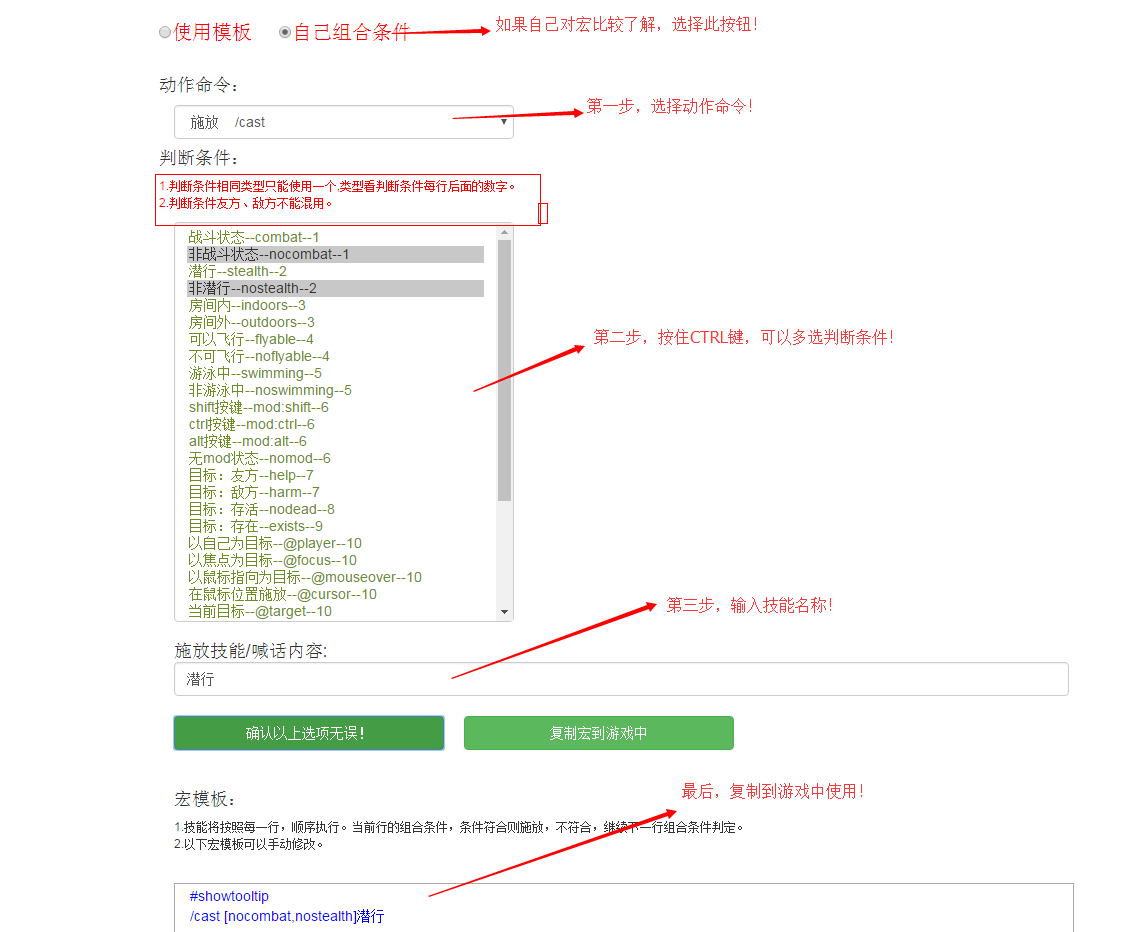 1.如果是对宏了解不多的小伙伴,可以使用宏模板一键生成宏,目前收录了5条模板,如果有好的建议,请留言,我添加到工具里面!