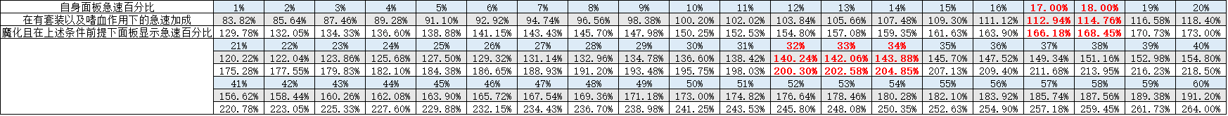 - 第二张图为自身面板加上套装效果给与的乘叠急速之间的关系