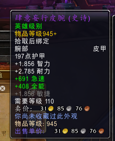 急速精通散件衣服,主急速,属性不错,没人抢就收了吧!