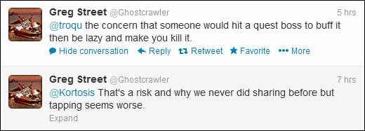 (我们)担心有人会只是碰一下任务BOSS,让它的血量加倍,然后啥也不干,让你一个人干掉BOSS。