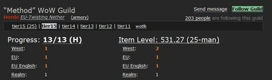 一直以来Method公会在全球首杀上都是万年老二,从拉格纳罗斯到大女皇夏柯希尔到雷神,甚至就连暗黑3击杀炼狱难度的Diablo他们都位居世界第二,这次在莱登的首杀争夺中他们终于拿下了第一。恭喜他们。