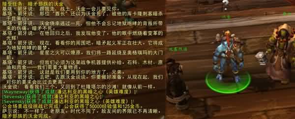 当玩家来到森金村,早已在此等候多时的基塔?箭牙告诉了我们暗矛部族现在的状况。沃金已在老陈的照料下恢复了过来,而大酋长的刺杀行为激怒了所有暗矛巨魔,现在他们已经组成暗矛起义军,正等待时机将变革之火一路延烧至奥格瑞玛的大门前。
