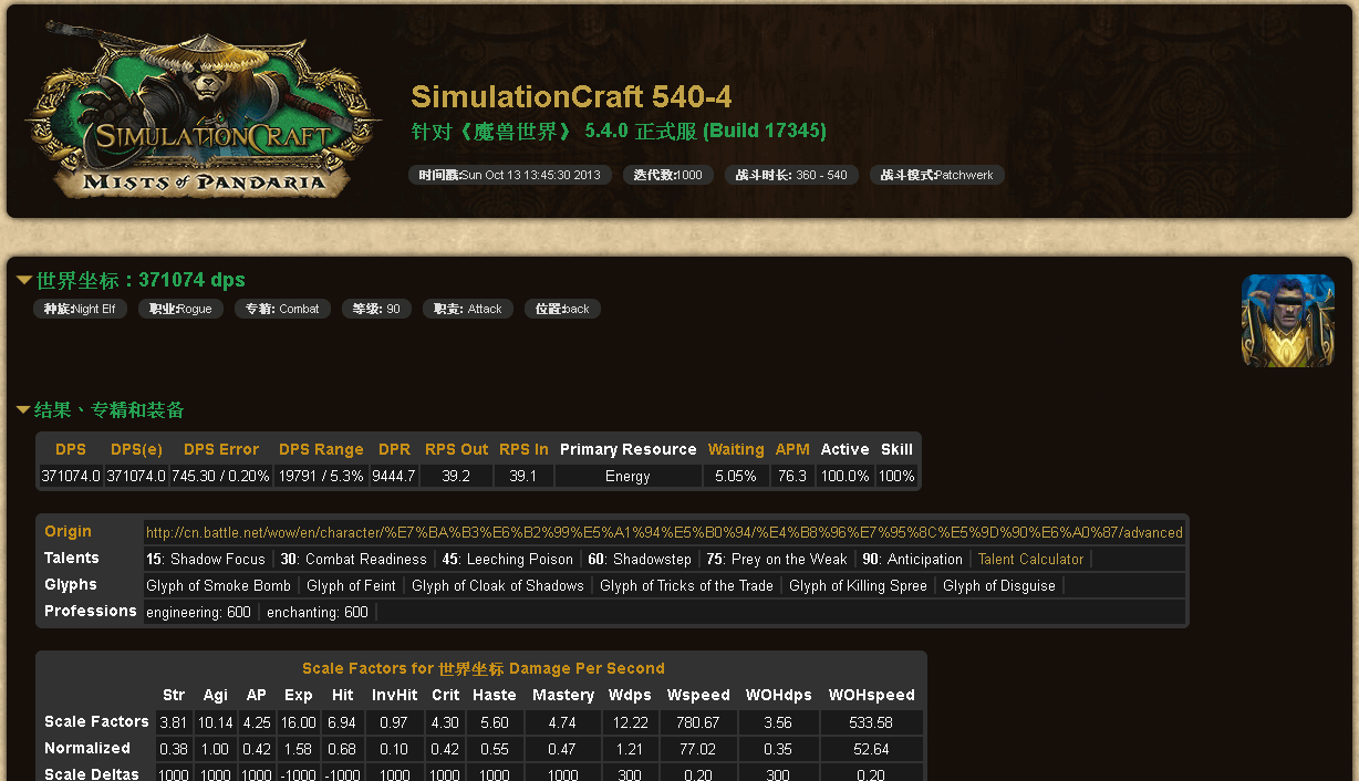 3.该循环的有效APM远高于正常循环(我的正常循环APM55.9该循环APM76.3),而战斗贼循环的失误对DPS影响较大,如果无法适应较高APM可能会导致DPS下降、