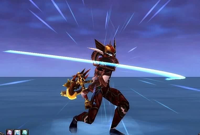 图12:头:抛光后的勇气头盔,肩:骑兵护肩,胸:救世胸铠,腿:肯瑞瓦防御者腿铠,手:魔钢手套,腰:乌瑟尔的腰带.