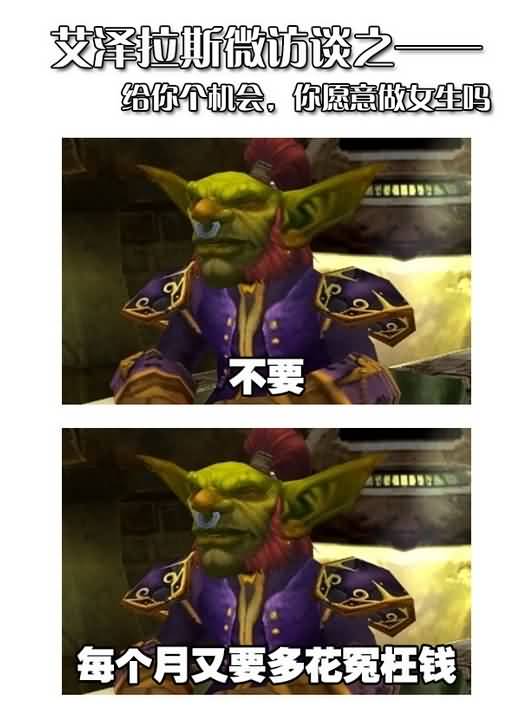 魔兽恶搞漫画:艾泽拉斯微访谈之——你愿意变成女生吗?