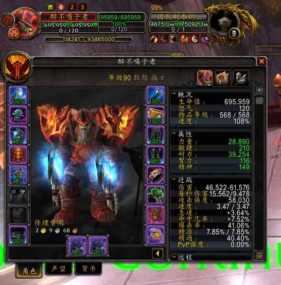 人小狂暴战一枚·装等568·今晚打掉25PTNCH拿到了斧头·顺路去撸了盘双月木桩·1E2秒杀28W(停手的时候是28.5)全程无食物合剂·就自己的怒吼BUFF自我感觉这装等打这DPS挺满意的·上面是输出图和输出比例
