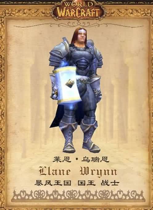 作为艾泽拉斯王国至高无上的王,莱恩·乌瑞恩最是显的那么亲切和那么睿智。他和安度因·洛萨、麦迪文是童年好友。他在20岁加冕成为暴风城国 王,在他的管理下,艾泽拉斯王国十分的繁荣、人民十分安定。而这一切都被童年好友麦迪文破坏了,第一次兽人战争爆发。在击杀了麦迪文后,尊敬的国王死于兽 人刺客迦罗娜的匕首下,之后洛萨将莱恩国王葬于湖畔镇的湖底。