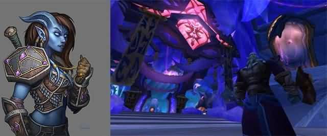 埃索达的组成就像德莱尼族徽一样,由一个中心,三个分支组成,分为四个部分,纳鲁之座,水晶大厅,圣光穹顶,贸易阶梯。德莱尼人一直给人一种神秘莫测的感觉,埃索达也是一样,在它的蓝紫光下,那真是一种神秘的美丽。