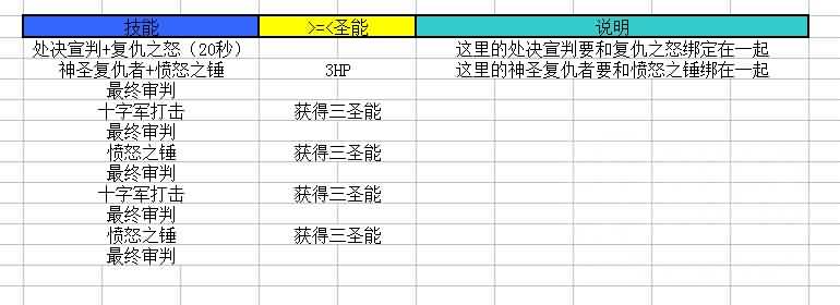 在爆发前要切一次正义圣印补一次BUFF,在切回去进入爆发,因为15%AP收益很高,所以可以在爆发途中打个审判(在高AP时期,审判在优先级上有可能会比十字军打击高)