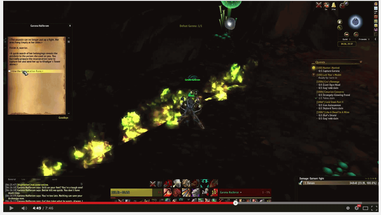 加罗娜晕了守望者几乎秒杀卡德加。在守望者的要求下,玩家去追杀小师娘。因为刺杀卡德加的武器被邪能法术所附魔,卡德加已经中毒。
