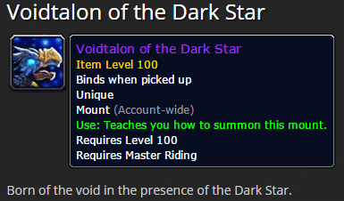 近日,PTR客户端更新至6.1.0.19445版本,从客户端内挖掘出一个新坐骑[黑暗之心的虚空利爪],根据图标来看,这个坐骑很可能是火焰之地掉落的火乌鸦的的紫色暗影版!